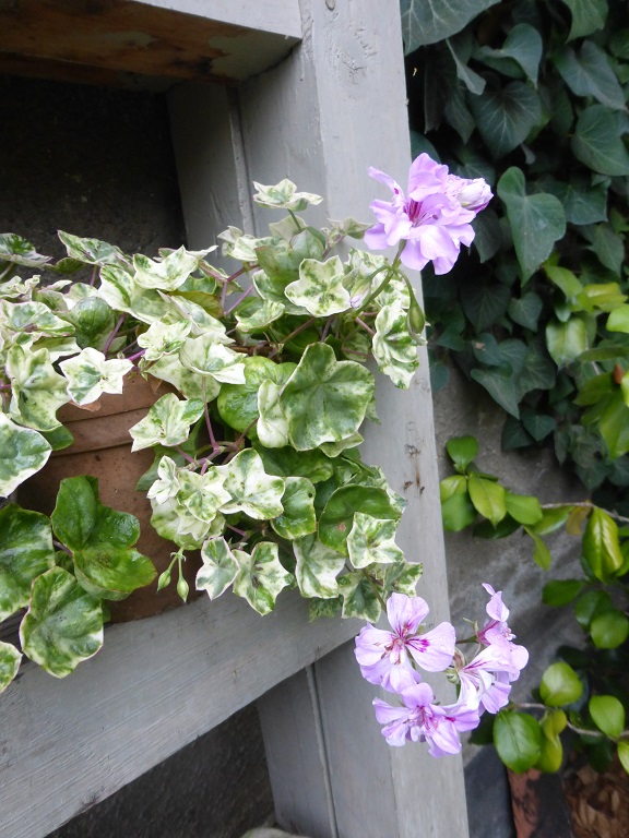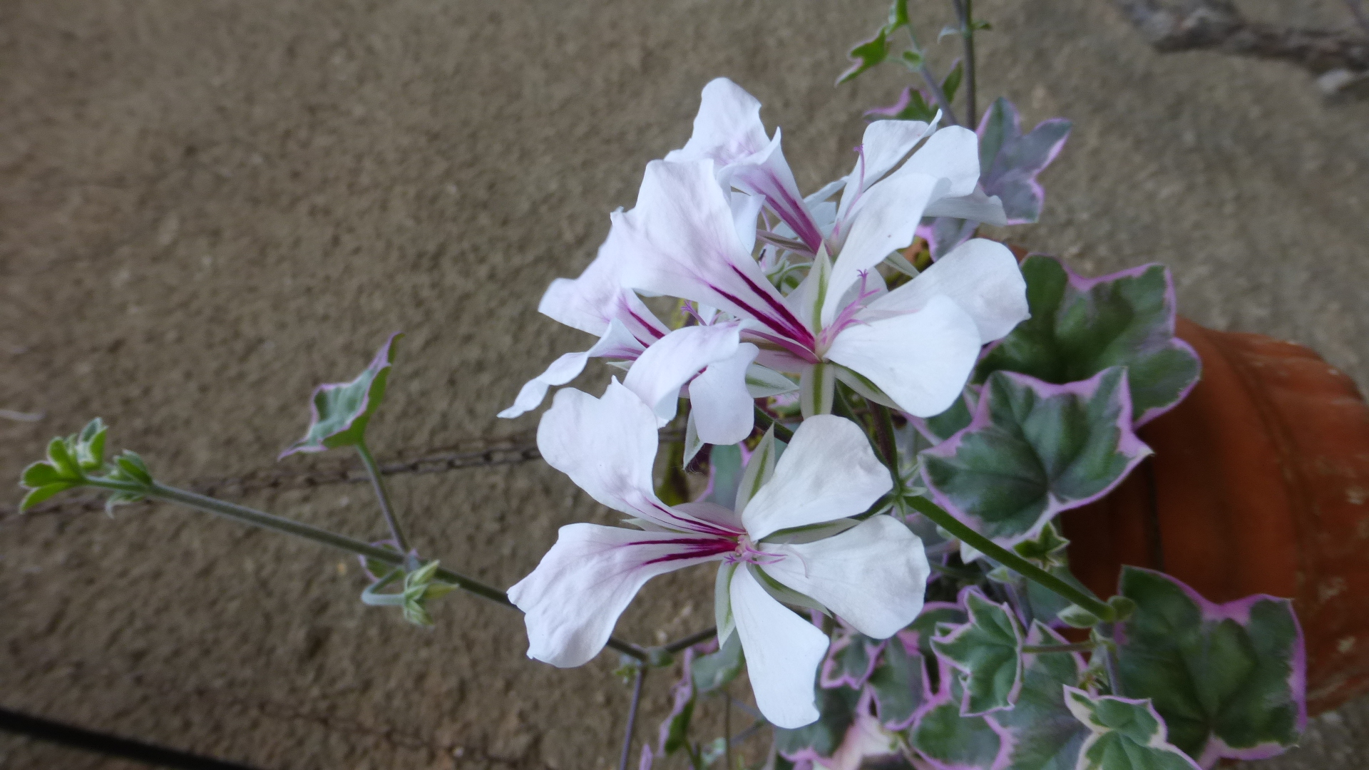 Pelargonien mit dekorativen panaschierten Blättern.