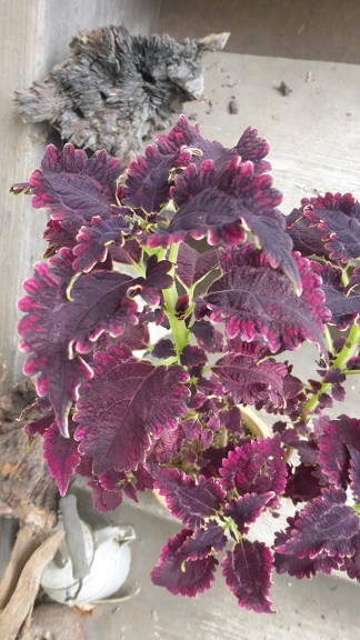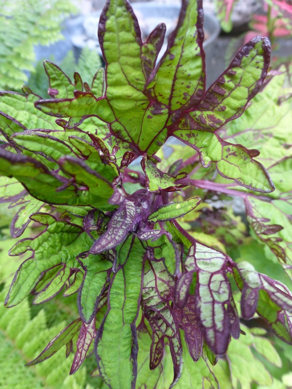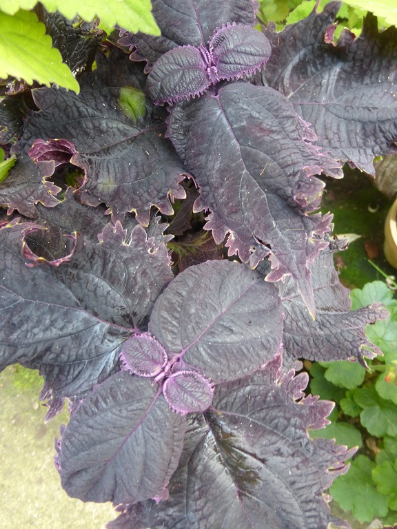 Das Laub ist vilett überhaucht, die Unterseite ist dunkelviolett. Foto