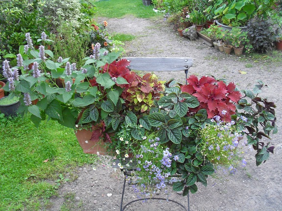 im Freien zwischen blühenden Topfpflanzen oder in Balkonkästen.